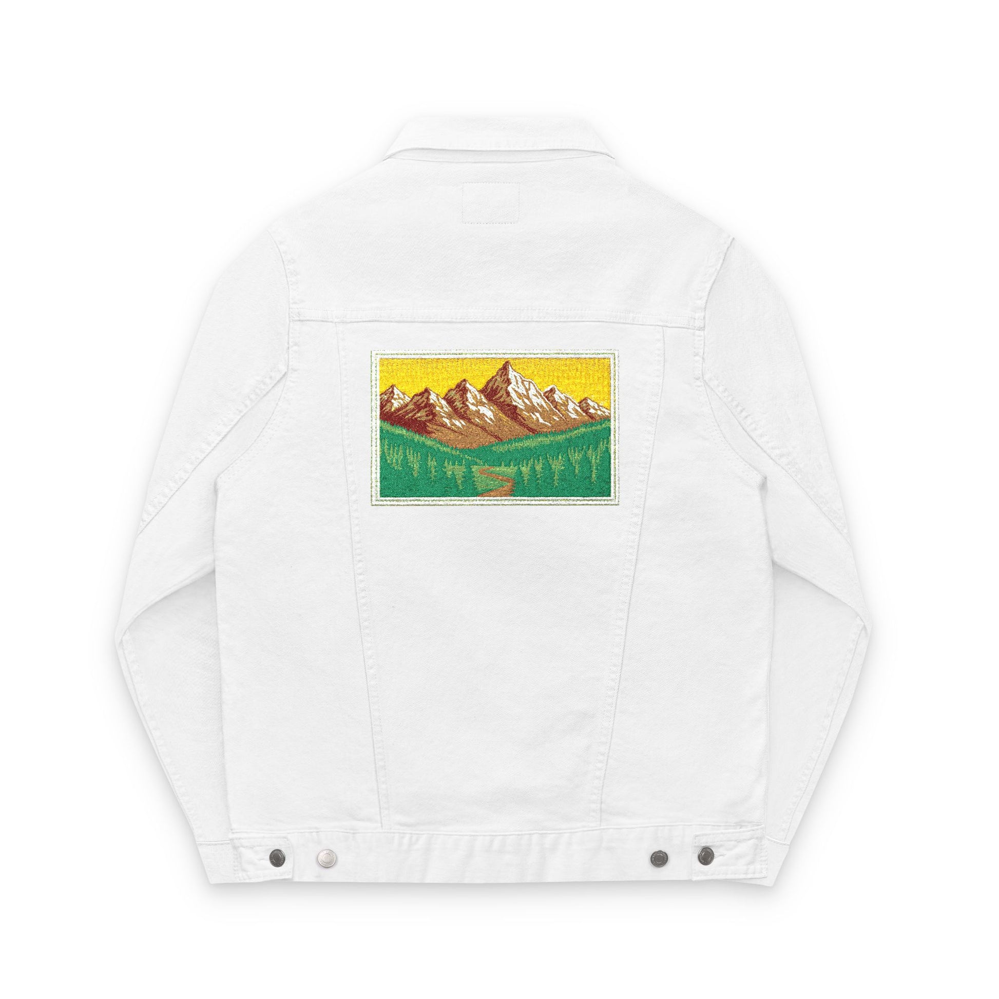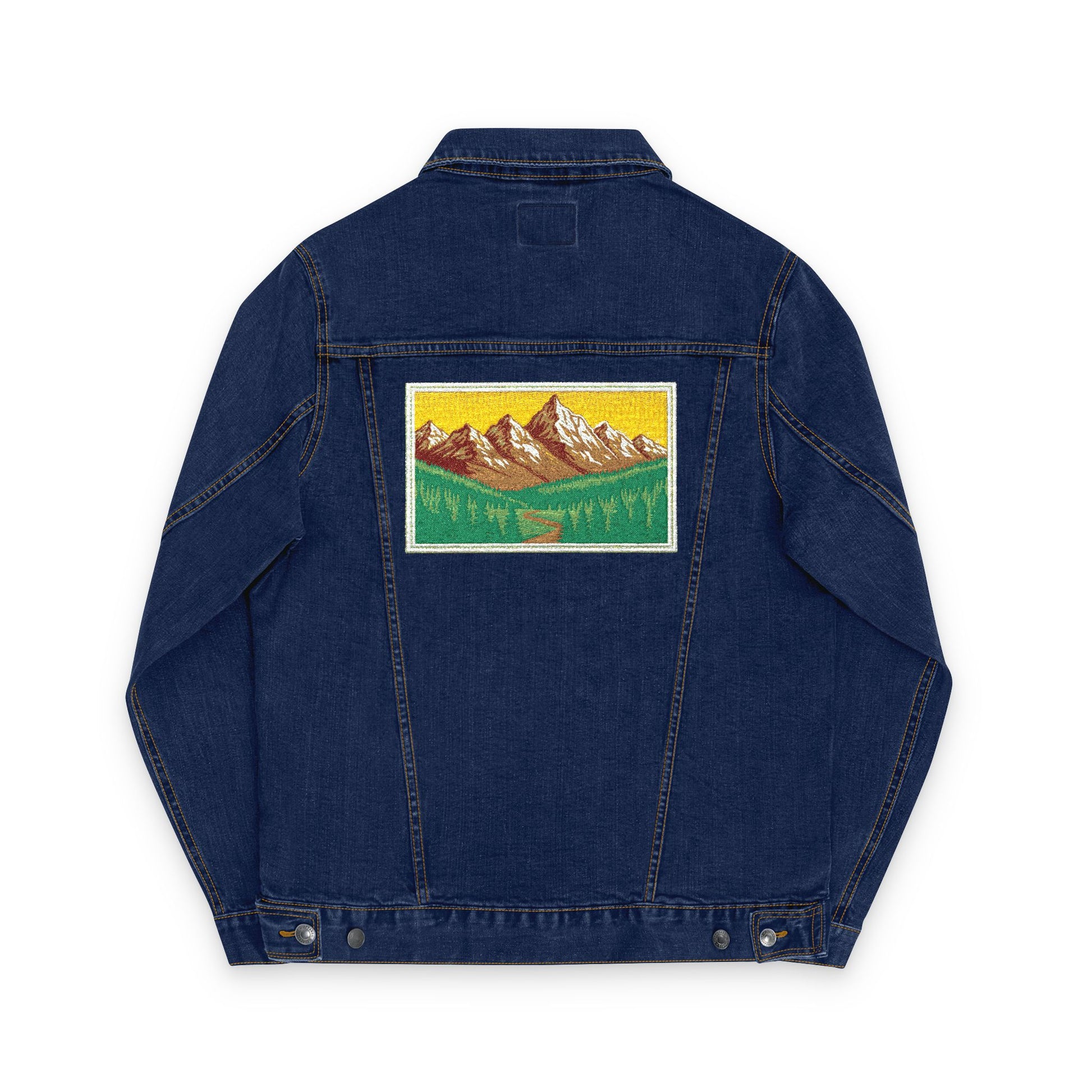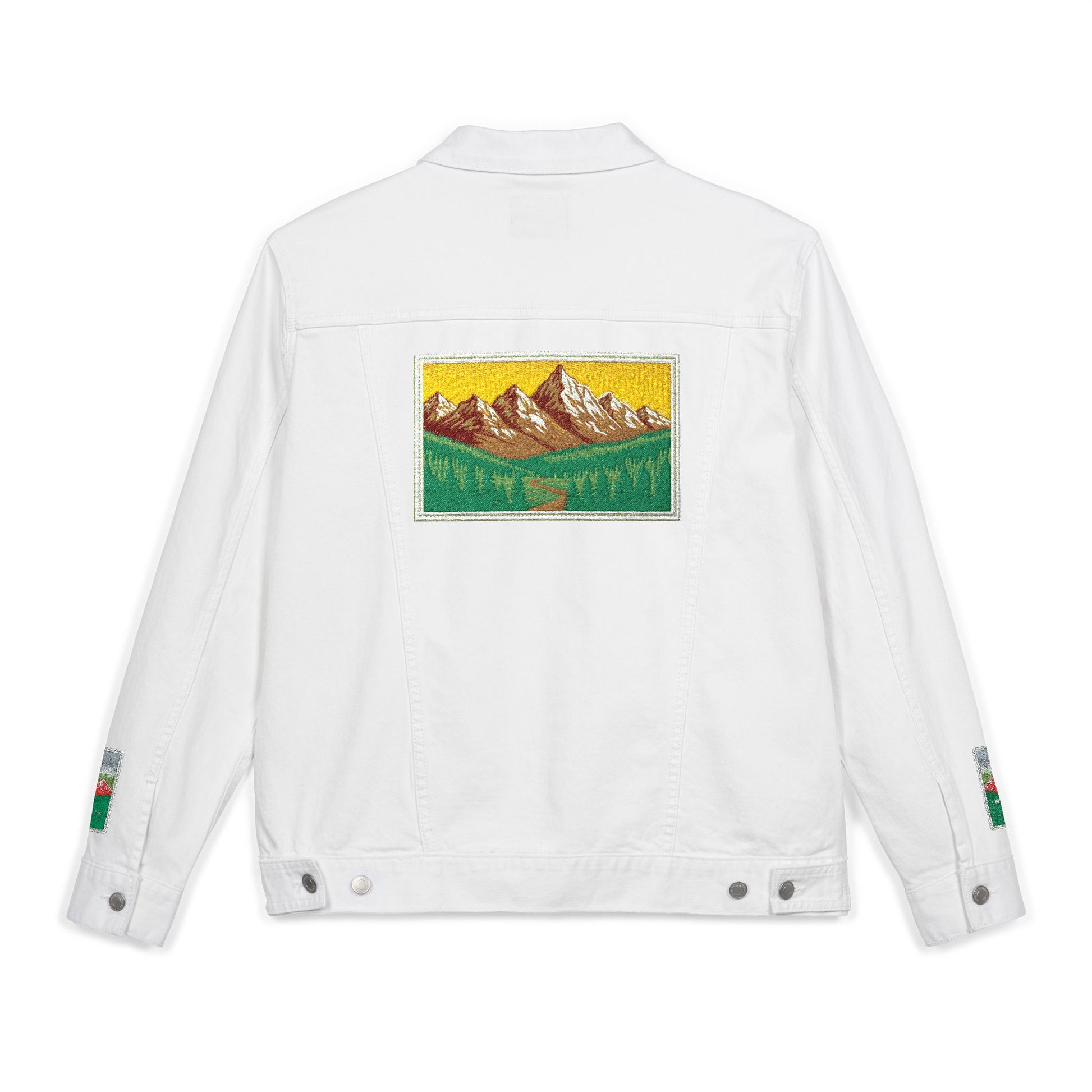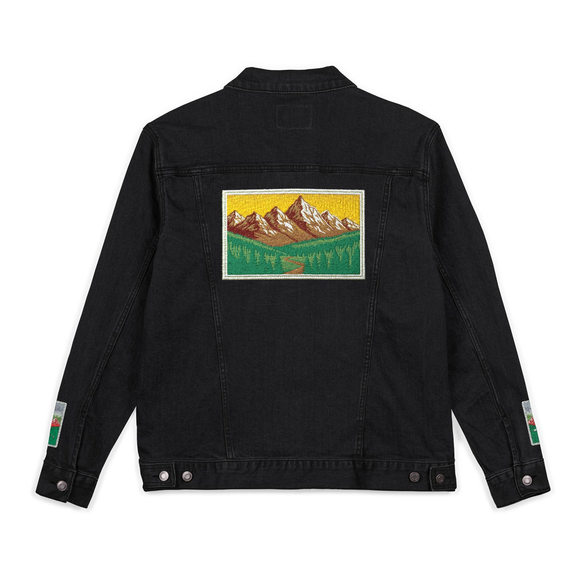 Embroidered Unisex Denim Jacket - Mountain and Floral Designs, Streetwear, Casual Outerwear, Gifts for Nature Lovers, Trendy Summer Jacket